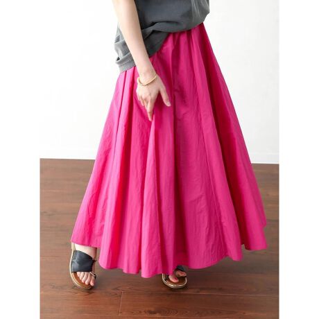 軽やかで動きのあるシルエットが大人かわいい印象のナイロンスカート。