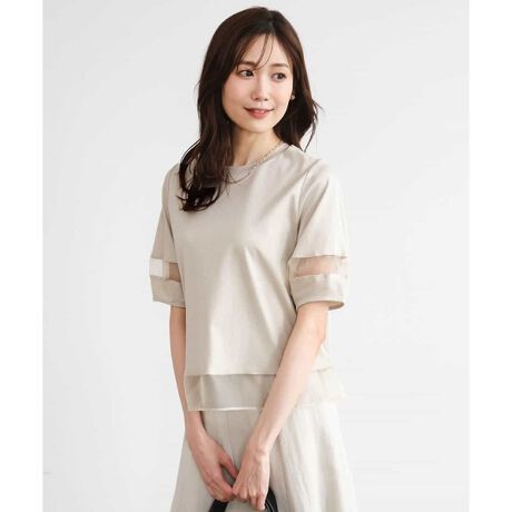 [洗える]シアー切替えランタンスリーブカットソー