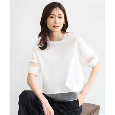 程良い遊び心のあるデザインは、いつものボトムを一気に旬顔にアップデートしてくれます。裾にシアーな切替えがあるので、ボトムにはインせずにアウトで着こなすのがおすすめ。デザイン性はもちろん、軽やかで涼しげに着こなせるのも嬉しい。