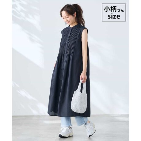 上品な印象のフレアシルエットに、胸元のピンタックがアクセントのシャツワンピースです。