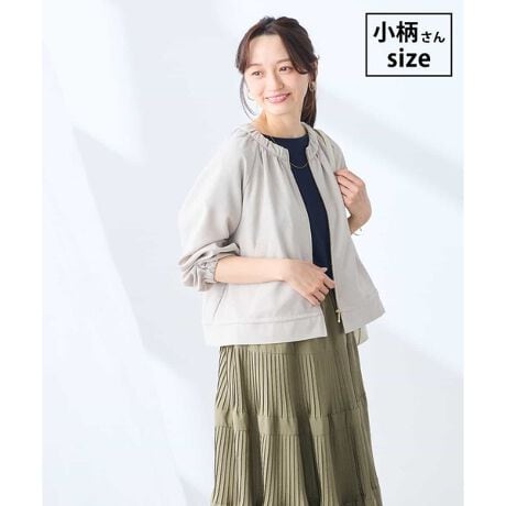 清涼感のあるリネンライクな素材のノーカラーブルゾン。