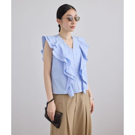 【WEB限定】コットンリネンタイプライターフリルブラウス
