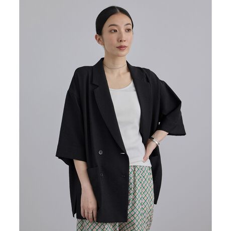 肘が隠れるハーフスリーブと両サイドの深めスリットがポイントの軽やかなジャケットです。