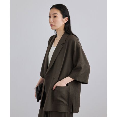 肘が隠れるハーフスリーブと両サイドの深めスリットがポイントの軽やかなジャケットです。
