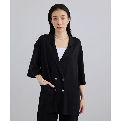 程よいゆとりでさらっと羽織るだけで決まるダブルブレストのハーフスリーブニットジャケット。