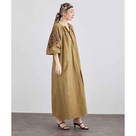 マクラメモチーフを繊細な刺繍で表現したロングワンピースです。