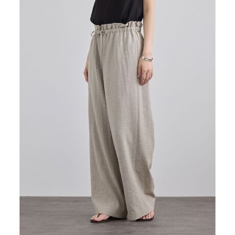 ウエストゴムと調整可能な紐付き仕様でイージーに着用できるリネンライクパンツ。