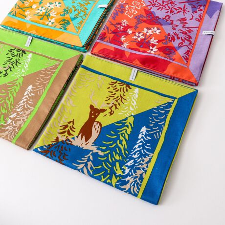 斜めに配色することにより、折り方やたたみ方によって見せるカラーを変えられるの遊び心が魅力のアイテム。