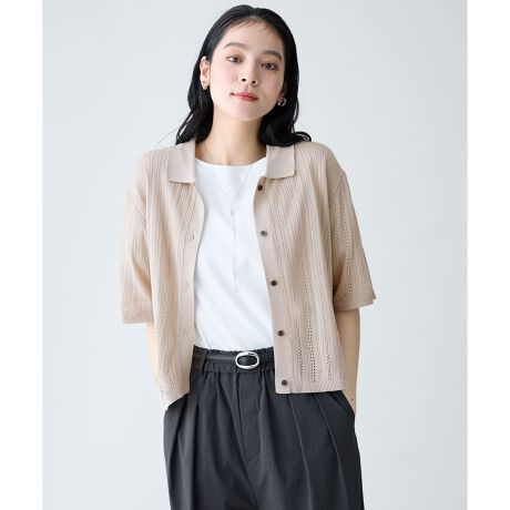 any FAM/anyFAM/any fam/エニファム/エニィファム/ポロニット/カーディガン/サマーニット/ショート丈/シアー感/透かし柄/クロップド丈/セットアップ対応/レイヤード/カジュアル