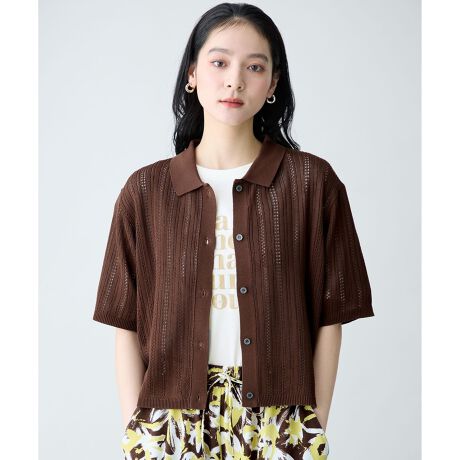 any FAM/anyFAM/any fam/エニファム/エニィファム/ポロニット/カーディガン/サマーニット/ショート丈/シアー感/透かし柄/クロップド丈/セットアップ対応/レイヤード/カジュアル