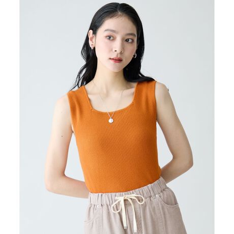 any FAM/anyFAM/any fam/エニファム/エニィファム/ニットタンク/タンクトップ/スクエアネック/インナー/接触冷感/UVケア/シンプル/レイヤード