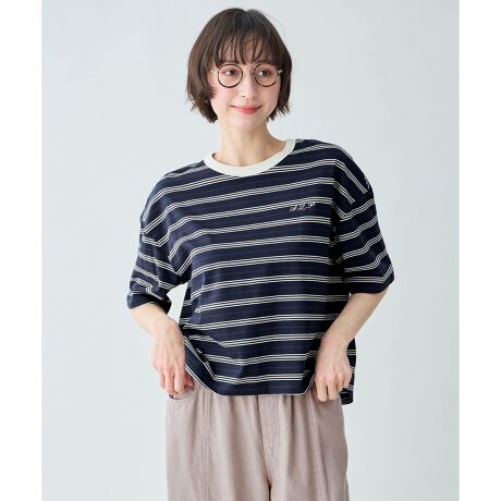 any FAM/anyFAM/any fam/エニファム/エニィファム/リンガーTシャツ/Tシャツ/半袖/クロップド丈/ワンポイント/刺繍/ボーダー/ネップ糸/ヴィンテージライク/マシンウォッシュ/洗える/カジュアル
