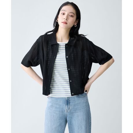 any FAM/anyFAM/any fam/エニファム/エニィファム/ポロニット/カーディガン/サマーニット/ショート丈/シアー感/透かし柄/クロップド丈/セットアップ対応/レイヤード/カジュアル