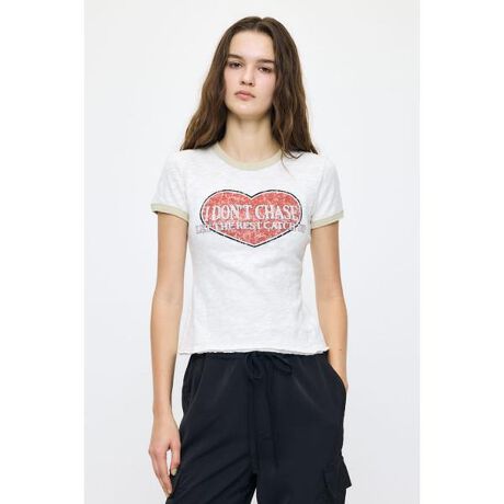 【I DON'T CHASE RINGER TSJ/ アイドント チェイス リンガーティーシャツ】■ポイント&ディテール配色リブがアクセントになったリンガーTシャツ。フロントには存在感のあるグラフィックロゴをあしらい、ヴィンテージライクな雰囲気に仕上げています。コンパクトなシルエットで、程よくフィット感のあるサイズバランス。ネックと袖口の配色がスタイリングにメリハリをプラスし、1枚で主役になるアイテムです。カジュアルながらも女性らしいラインを意識したシルエットに仕上げています。■スタイリングデニムやカーゴパンツと合わせたストリート感のある着こなしがおすすめ。コンパクトなサイズ感なので、ワイドボトムとの相性も抜群です。■商品のお気に入り登録お気に入りアイテムの再入荷・在庫1点などの通知を受け取ることができます。■ブランドのお気に入り登録新作アイテムの入荷や人気アイテムの再入荷、おすすめトピックスなど、いち早くブランドの情報を受け取ることができます。[注意事項]※画像の商品はサンプルです。実際の商品と仕様、加工が若干異なる場合があります。※画像の商品は光の照射や角度、お使いのモニター環境により、実物と色味が異なる場合がございます。※着用、お取り扱いの際は、アテンションタグをご確認ください。