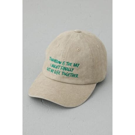 ■ウォッシュ加工フロントメッセージキャップ■ポイントヴィンテージライクな風合いが魅力のロゴキャップ。シンプルなフォルムにさりげない刺繍ロゴを施し、抜け感のある大人カジュアルを演出します。■ディテール程よくウォッシュ加工を施した素材が、こなれた印象をプラス。フロントには配色刺繍ロゴをあしらい、スタイリングのアクセントに仕上げました。ベーシックな6パネル仕様で頭にフィットしやすく、バックベルトでサイズ調整も可能。デイリーに使いやすい軽やかな被り心地です。■スタイリングTシャツやデニムと合わせた王道カジュアルはもちろん、ワンピースやジャケットスタイルの外しアイテムとしてもおすすめ。シンプルなコーディネートにプラスするだけで、程よいストリート感と抜け感を演出します。[注意事項]※画像の商品はサンプルです。実際の商品と仕様、加工が若干異なる場合があります。※画像の商品は光の照射や角度、お使いのモニター環境により、実物と色味が異なる場合がございます。※着用、お取り扱いの際は、アテンションタグをご確認ください。