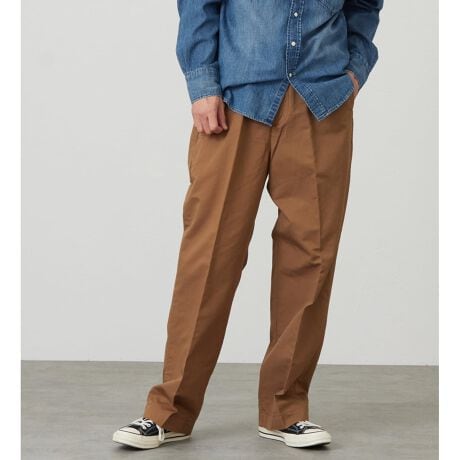腿周りにゆとりを持たせつつ、裾に向かって緩やかに絞ったビッグフィット。ノータック仕様にすることで、腰回りをすっきりと見せながらもリラックスした穿き心地を実現しました。素材の良さを引き立てる、シンプルで普遍的なシルエットを追求しています。