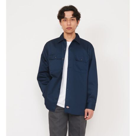 薄手で軽いポリエステルコットンの5.25オンスのTCツイル生地で仕立てた、ロングスリーブタイプのワークシャツ。