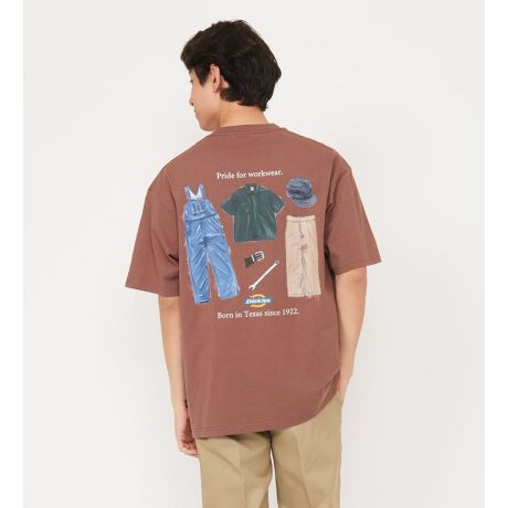 Dickiesのヘリテージアイテムを並べた手書き風グラフィックTシャツ。 ヘリテージのロゴを採用し、ブランドの歴史を強調したTシャツです。
