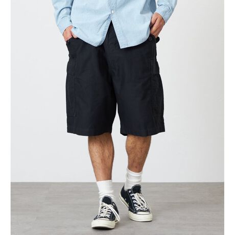 ショーツのボリュームを活かし、トップスにはあえてクリーンな白Tシャツや、少しタイトなサマーニットを合わせるのがおすすめ。足元は重めのサンダルやボリュームスニーカーでバランスを取ると、より洗練されたミリタリースタイルが完成します。