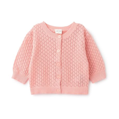 涼しげな印象の透かし編みカーディガンです。コーディネートに馴染みやすいナチュラルな色合いになっています。UVカット仕様なので紫外線対策も可能です。マシーンウォッシャブル加工をほどこしており、ご家庭でのお洗濯もラクラク。内側にお名前を記入できるタグがついています。【おすすめの着用時期は春夏シーズン】