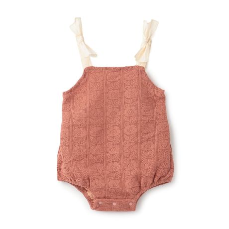フラワー柄のレース生地を使用した上品な印象のサロペットです。