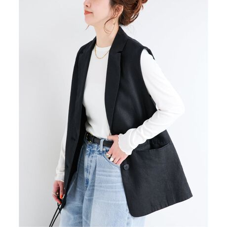 ヨーロピアンフラックスリネンのテーラード型ジレ。