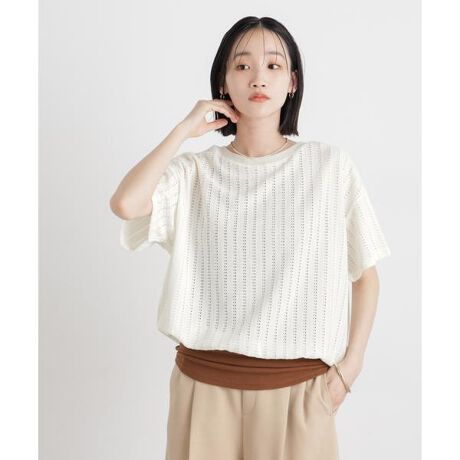 裾のドロストデザインと衿のバイカラーが、さりげなくスポーティーな印象をプラスするデザイントップス。表面感のあるカットジャガード素材で、シンプルながらも1枚で着映えるデザイン。シルエットの変化も楽しめる、着回し力の高い一着です。