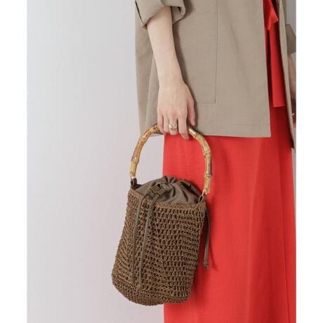 バンブー調のハンドルが上品なアクセントになった、バケツ型ワンハンドルバッグ。ペーパー編みの柔らかな素材感が、春夏らしい軽やかで涼しげな雰囲気を演出。スタイリングにプラスするだけで季節感と抜け感を添えてくれるアイテムです。