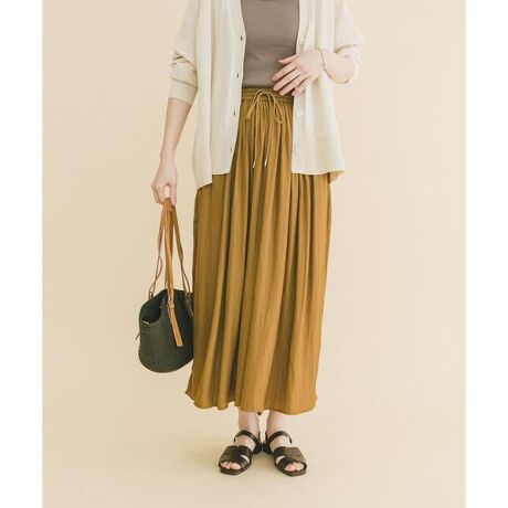 ウエストがイージー仕様のため、着用位置を調整しやすく、低身長の方にもバランスよく着ていただけます。程よいボリューム感のあるシルエットで、体のラインを拾いにくく、すっきりとした印象に仕上がります。