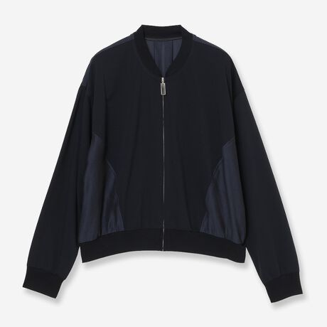 カジュアルになりがちなブルゾンを、程よい光沢感のあるジャージー素材でクリーンな印象に仕上げました。