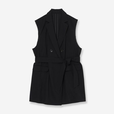 麻のような清涼感がありながらシワになりにくく、ストレッチ性が高い人気素材を使用したミドル丈ジレ。