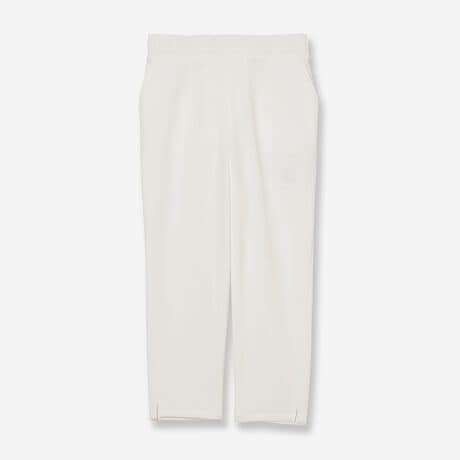 ・足首をすっきり見せるスリット入りのくるぶし丈はメリハリのあるシルエットを演出