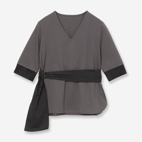 サッシュベルトでウエストマークできるコンビカットソー。