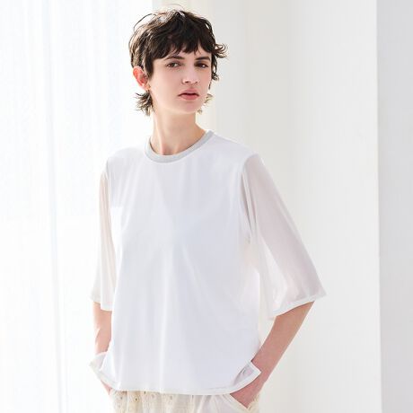 軽やかなチュール素材をレイヤードした、エアリーな印象のプルオーバー。