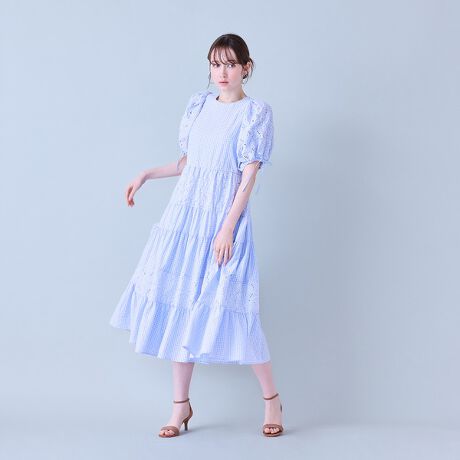 ・部分パーツで刺繍を施した素材を使用したサマーワンピース。