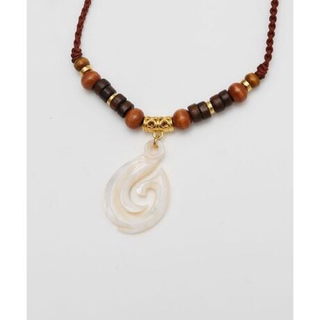 [型番:42TZ6203-2026]シェルモチーフと天然素材を組み合わせたナチュラルなネックレス。ハワイの海や大地を思わせる素材感が胸元を爽やかに彩ります。異なる質感のパーツが絶妙に調和し、コーディネートにさりげない存在感をプラス。リゾートスタイルにおすすめです。