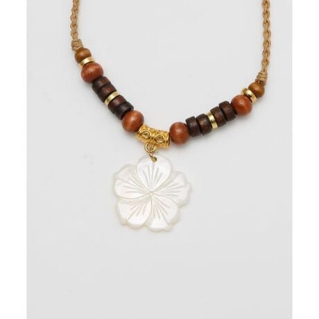 [型番:42TZ6203-2026]シェルモチーフと天然素材を組み合わせたナチュラルなネックレス。ハワイの海や大地を思わせる素材感が胸元を爽やかに彩ります。異なる質感のパーツが絶妙に調和し、コーディネートにさりげない存在感をプラス。リゾートスタイルにおすすめです。