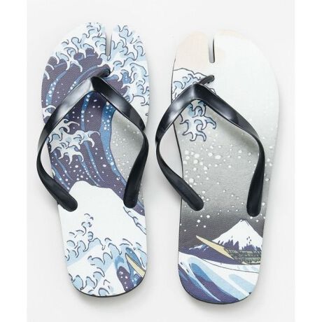 [型番:7LIP6201-2026]浮世絵柄を大胆にあしらった足袋型ビーチサンダル。指先が分かれた足袋仕様で、浴衣や和装にもなじむデザインです。軽やかで扱いやすく、水辺やおでかけにも便利。足元から和の粋を取り入れられる個性派アイテム。