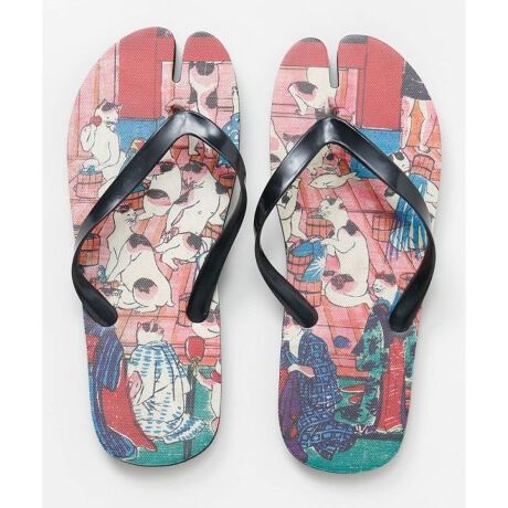 [型番:7LIP6201-2026]浮世絵柄を大胆にあしらった足袋型ビーチサンダル。指先が分かれた足袋仕様で、浴衣や和装にもなじむデザインです。軽やかで扱いやすく、水辺やおでかけにも便利。足元から和の粋を取り入れられる個性派アイテム。