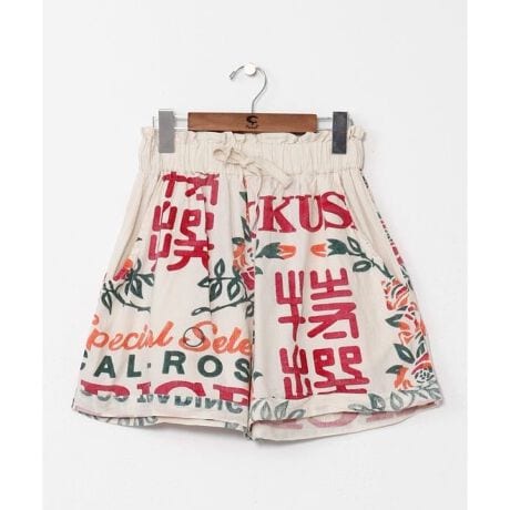 [型番:TLG-6139-2026]【タイ直輸入】タイの広告をプリントしたユニークなデザインが魅力のハーフパンツ。風合いの良いタイコットンで涼しく快適。存在感のある柄でトップスを選ばずコーデの主役に。ウエスト紐調整可。