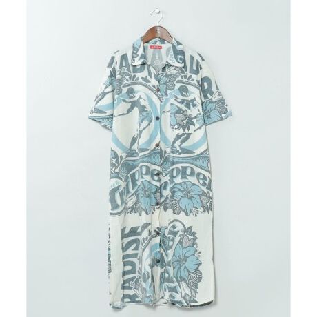 [型番:TLG-6136-2026]【タイ直輸入】大胆な広告柄が魅力のシャツワンピース。前開き仕様で羽織りとしても使える2WAYデザイン。柔らかく風合いのあるタイコットン素材で、コーデの幅が広がる一枚。