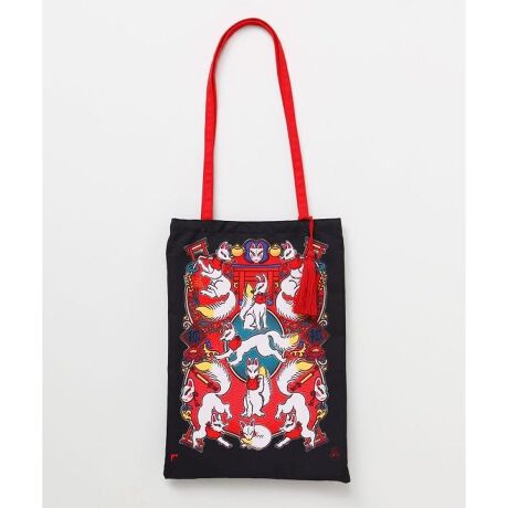 [型番:7IKP6201-2026]【倭物やカヤ×中村杏子】可愛らしい表情の動物たちをポップな色使いで描いたトートバッグ。A3サイズの荷物も入る大きめサイズで荷物をたっぷり収納できます。日常使いからおでかけまで幅広く活躍します。