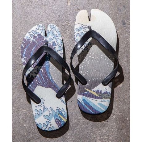 [型番:7LIP6202-2026]浮世絵柄を大胆にあしらった足袋型ビーチサンダル。指先が分かれた足袋仕様で、浴衣や和装にもなじむデザインです。軽やかで扱いやすく、水辺やおでかけにも便利。足元から和の粋を取り入れられる個性派アイテム。