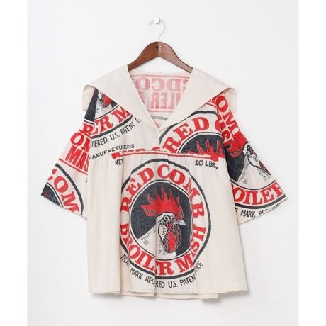 [型番:TLG-6127-2026]【タイ直輸入】タイ広告柄が目を惹くレディーストップス。肌触りの良いタイコットン素材とセーラー襟デザインで、一枚でコーデが決まる存在感。個性派スタイルを楽しみたい方におすすめ。