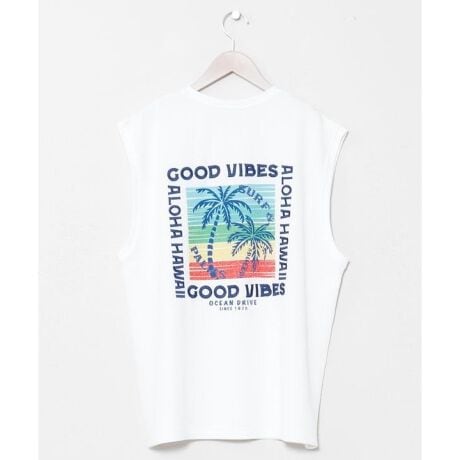 [型番:4CA-6218-2026]ふくれジャカード素材で仕立てたメンズタンクトップ。凹凸のある生地感がさりげない表情を生み、サーフ感のある刺しゅうとプリントがアクセントに。開放感のあるシルエットで、ショーツやデニムと合わせたリラックススタイルにおすすめの一着です。