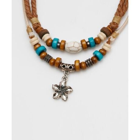 [型番:42TZ6201-2026]天然素材を組み合わせたナチュラルテイストのネックレス。ハワイアンモチーフをポイントに、力強さと繊細さを表現しました。ウッドビーズの温もりある風合いが胸元にやさしくなじみ、シンプルな装いのアクセントに。