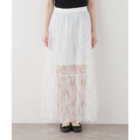 コットンナイロンの繊細なリバーレースを贅沢に使用した、ティアードロングスカート。