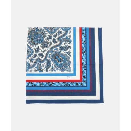 トリコロールを基調に、ボタニカル柄とペイズリー柄を掛け合わせた華やかなデザインが着こなしのアクセントに。