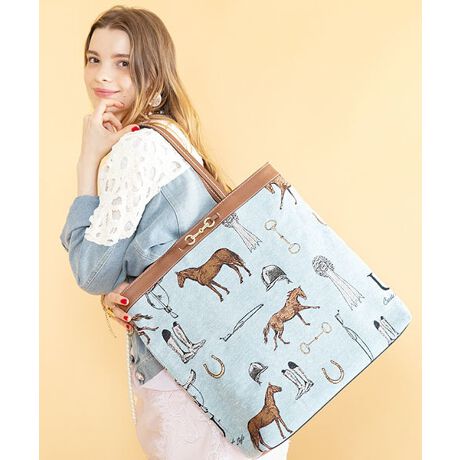 ジャガードバッグ/ビッグトート/大容量バッグ/A4トート/通勤バッグ/通学バッグ/柄トート/クラシックバッグ/ホースモチーフ/馬蹄柄/ビットデザイン/上品カジュアル/デイリートート