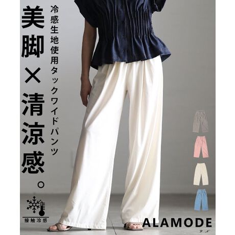 ひんやりとした肌触りが心地いいワイドイージーパンツ。暑い季節でも快適に過ごせる素材感で、さらっと穿けるのが嬉しいポイント。リラックス感がありながら、すっきり見えも叶う一本です☆
